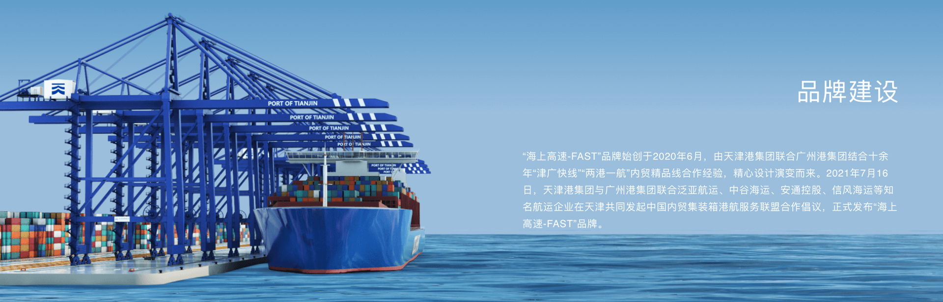 作为我国内贸集装箱运输规模最大的南北枢纽港口,天津港与广州港自1997年开启内贸集装箱运输南北港口合作已携手跨入第25个年头。长期以来,两港在国内航运企业和广大客户的大力支持下,深入实施内贸集装箱品牌化发展战略,深耕培育国内南北运输精品航线示范工程,通过持续完善服务,逐步将合作推出的“津广快线”品牌发展成为“两港一航”产品,并进一步升级为“海上高速-FAST”新模式,开创了港航协同、精诚合作的典范。