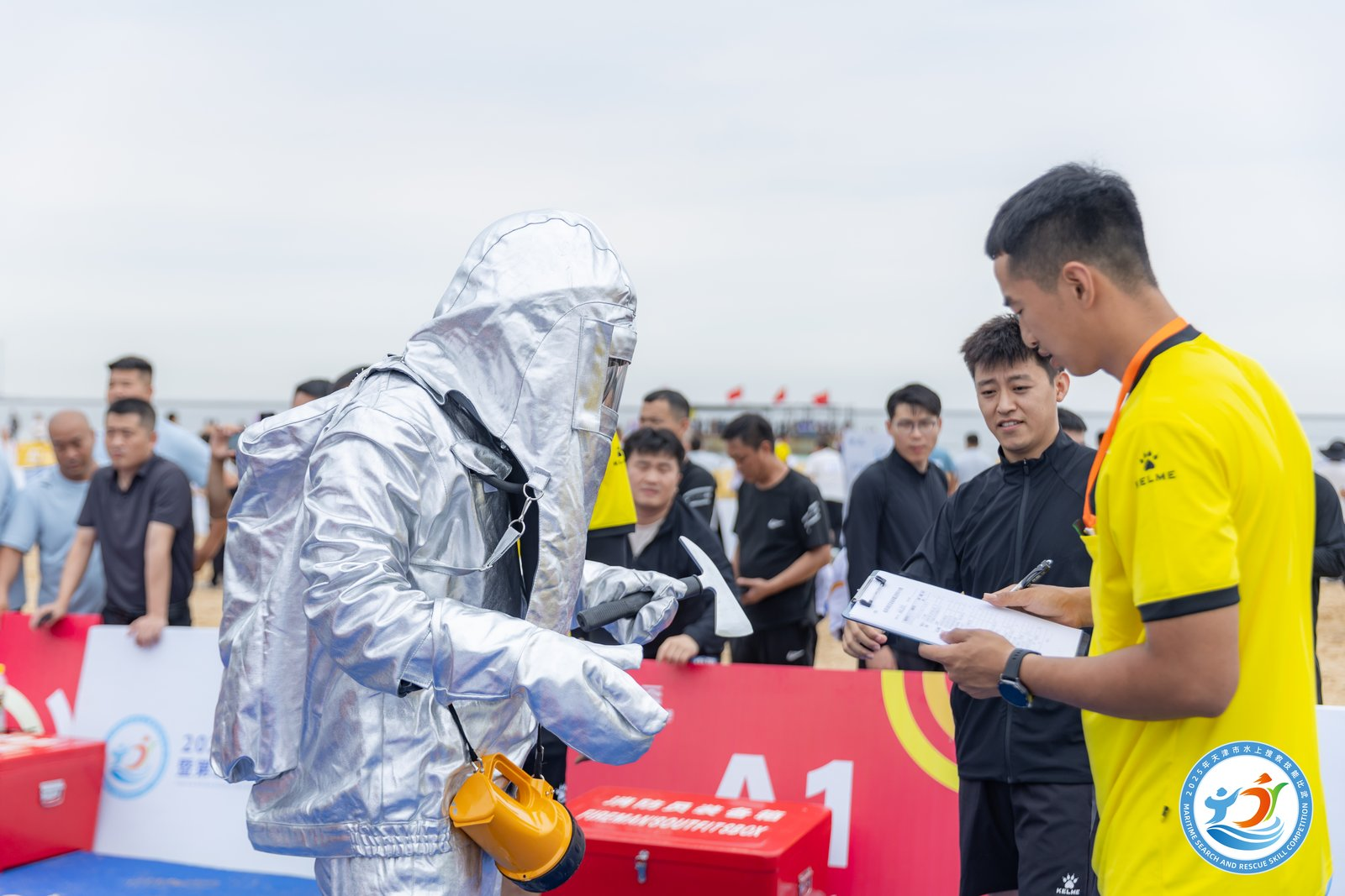 本次水上搜救技能比武活动以“智汇救援,守护蔚蓝”为主题,通过覆盖“空—海—岸”的立体竞技形式,更好演练环渤海水上搜救力量的协同能力,推动形成“区域应急共同体”。比赛选取实际救助中最常见的场景作为竞赛科目,围绕船用消防员装备穿戴及使用、心肺复苏、救生圈定点抛投、翻舟自救、遥控救生圈(水上飞翼)救生、皮划艇救生、水陆救助联合转运七大科目展开技能对决,覆盖陆上、水上及水陆联合救援场景。由于水上项目设置在开放水域,与往年封闭水域相比,增加了风、浪、流等不确定因素,比赛环境更加真实。