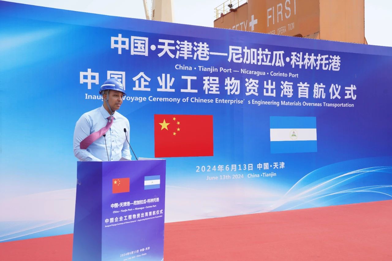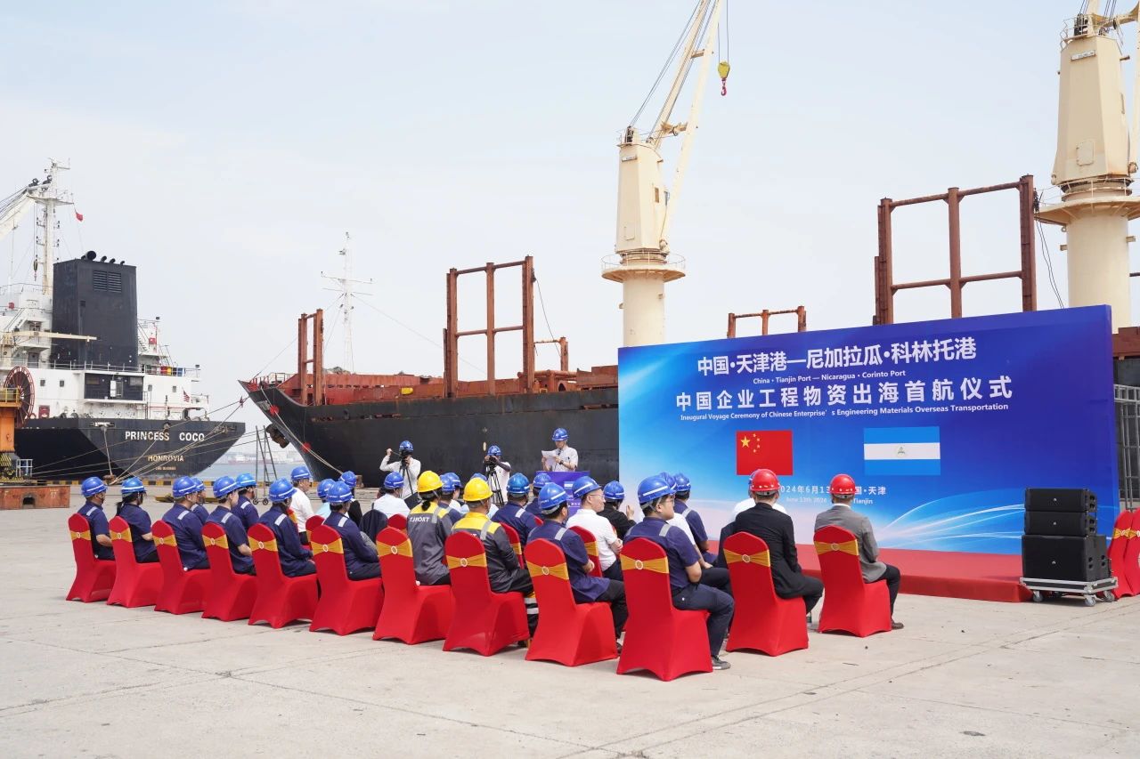 6月13日上午,“中国·天津港-尼加拉瓜·科林托港 中国企业工程物资出海首航仪式”在天津港大沽口港区13号码头举行。随着“阳光财富”轮开始作业,首批2000吨钢材、设备和工程车辆陆续吊装上船,作业完成后船舶将途经太平洋,直达尼加拉瓜科林托港,此次直航海运服务为我国央企参建尼加拉瓜工程项目提供了海运便捷通道。