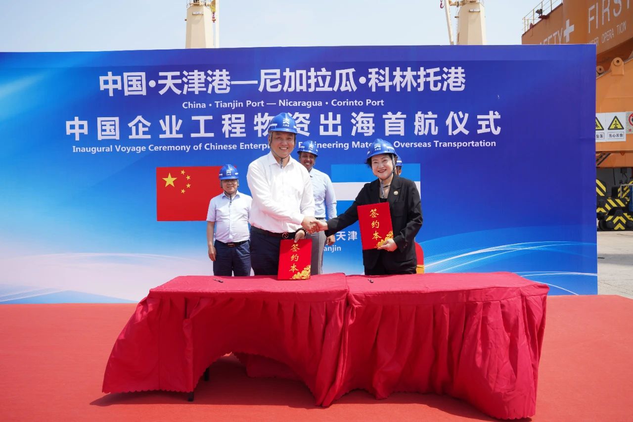 首航仪式上,一带一路服务机制与天津市多式联运行业协会签署合作协议,旨在丰富拓展“一带一路”经贸合作,深化“项目对接、风险化解和纠纷调解”服务,更好发挥行业协会优势服务中国企业“走出去”和外国企业“走进来”。天津市多式联运行业协会和尼加拉瓜共和国驻华大使馆签署合作备忘录。“天津市多式联运行业协会充分发挥桥梁纽带作用,调动会员单位在国际航运物流及相关配套领域的专业服务资源和综合物流专业优势,精心组织、周密安排,为中国企业工程物资出海量身打造从天津港发往尼加拉瓜科林托港的便捷物流通道。”天津市多式联运行业协会会长魏波介绍。