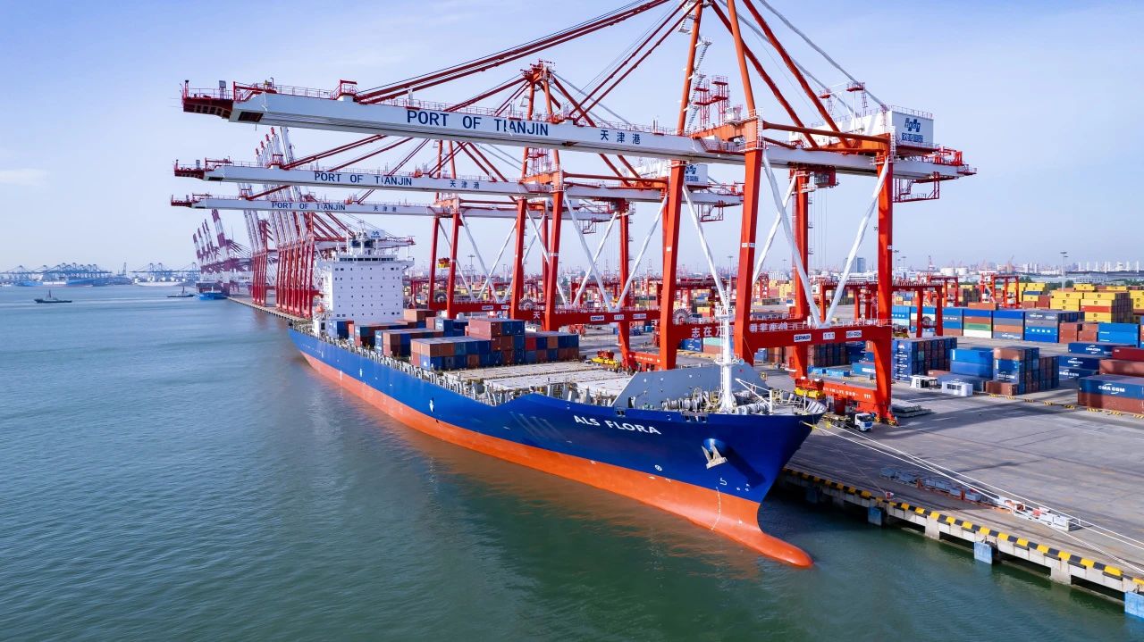 5月16日,天津港欧亚国际集装箱码头,岸桥起落装卸繁忙,集卡往来穿梭有序,为“达飞弗洛拉”轮装船任务奏响了“协奏曲”。中午这艘货轮带着京津冀区域的集装箱货物出海远航,驶往墨西哥的恩塞纳达港,标志着天津港新增直航中美洲海运航线,为京津冀地区外贸出口再添新动能。