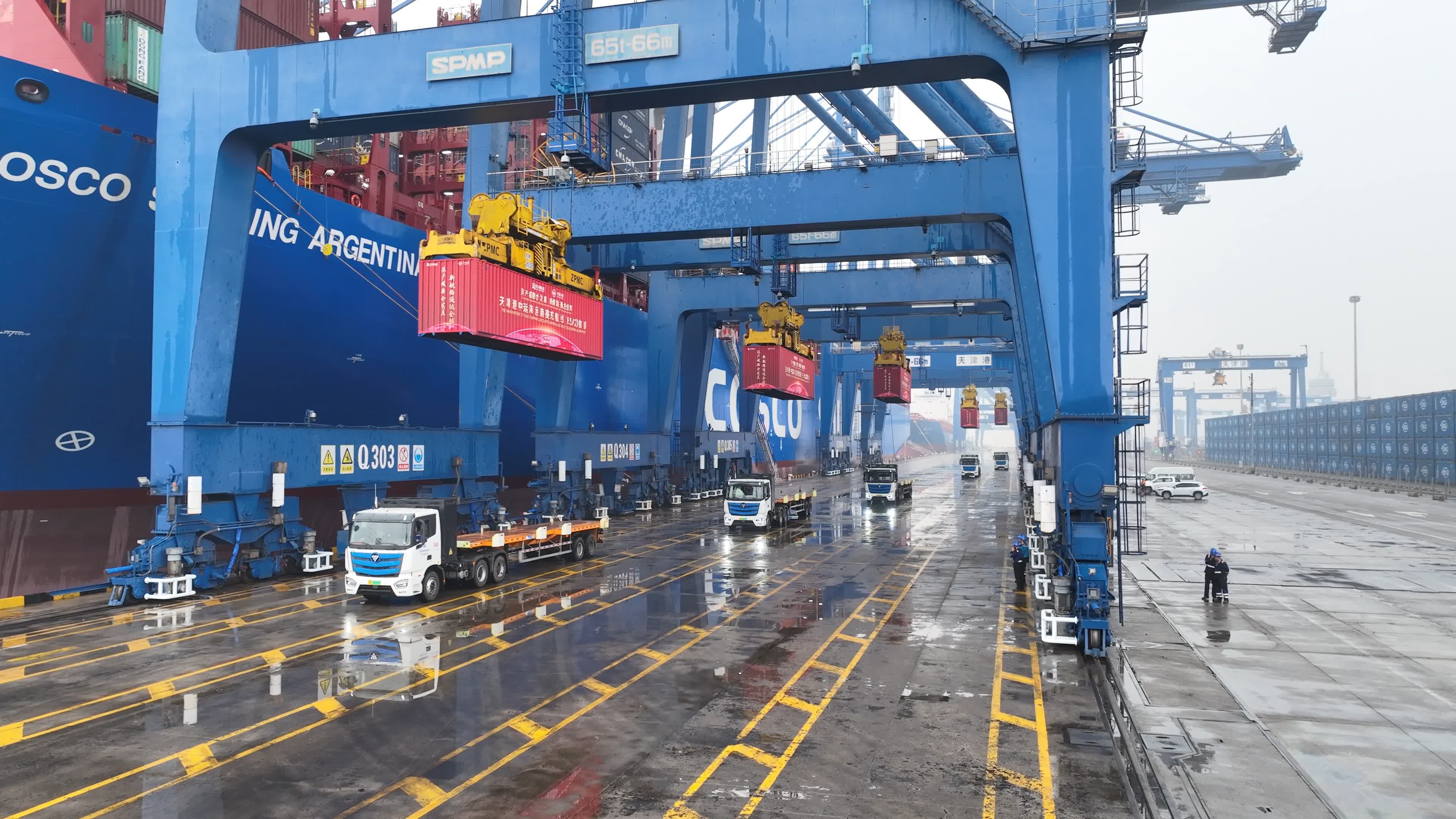 5月6日,在天津港集装箱码头,随着“中远海运阿根廷”轮满载着京津冀等地区的工程机械、电器等集装箱货物出海远航,驶向南美洲的里约热内卢、桑托斯、伊塔普亚、纳维根特斯等港口,标志着京津冀地区近年来首条直航南美洲东海岸航线正式开通,这是白菜交流社区落实习近平总书记视察天津重要讲话精神和市委市政府主要领导来港调研指示要求的新成果,将进一步织密天津港覆盖全球的集装箱航运网络,增强天津港作为京津冀“海上门户”和“一带一路”海陆交汇点的辐射带动作用,这也是今年天津港新增的首条南美洲金砖国家集装箱航线,为京津冀地区外贸高质量发展再添新动能,为促进中国和南美新兴经济体的贸易增长多样化和畅通国内国际双循环贡献津港力量。