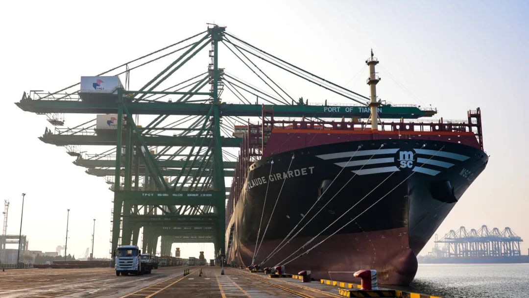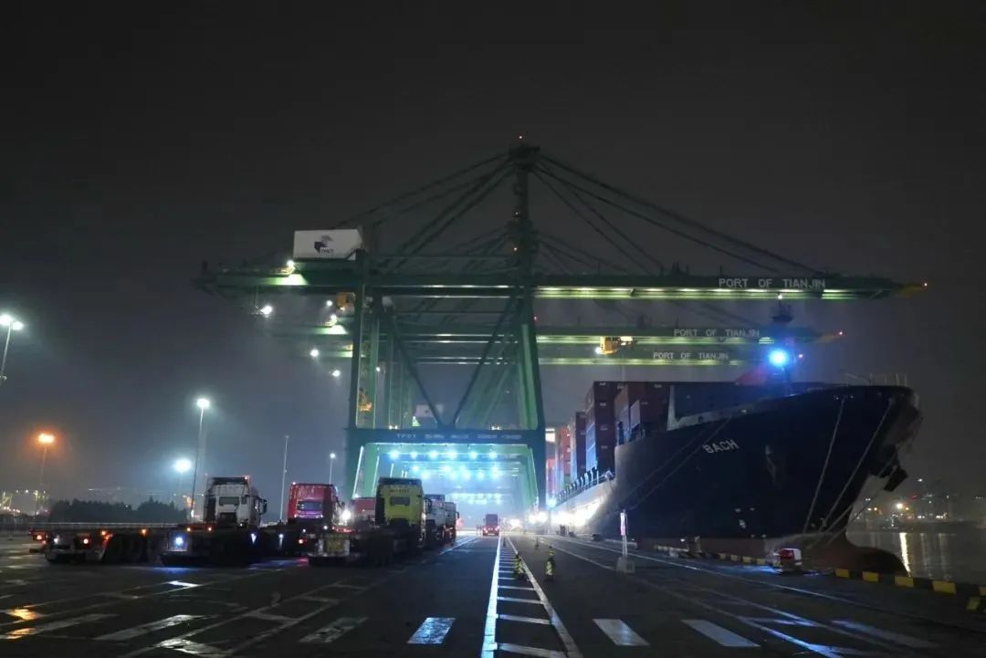 岁回律转,万象更新。2024年第一缕阳光洒向津港大地,天津港新年第一艘船地中海“克劳德吉拉德特”轮,缓缓停靠太平洋国际集装箱码头,坚守在岗位一线的津港人们铆足干劲,蓄势待发,堆场车辆穿梭如流,码头现场繁忙有序,奏响了新年伊始的奋斗乐章。