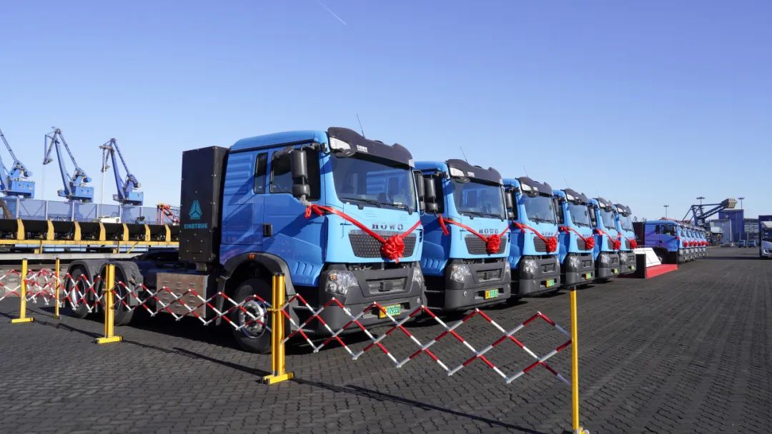 1月3日下午,天津港焦炭码头有限公司清洁能源运输启动仪式举行,在位于天津港南疆港区的该公司B货场,十几台新能源重卡汽车披红挂彩、一字排开,未来将投身繁忙的港口作业之中。以此为标志,白菜交流社区焦炭货类实现了100%清洁运输。