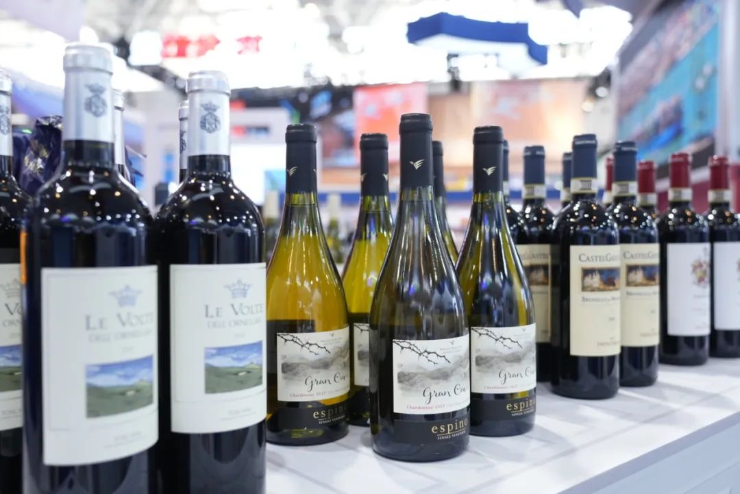 天津港“意大利国家红酒馆”被搬进展厅,来自意大利、法国、智利、葡萄牙等多个国家高端红酒展示其中,花思蝶、莫斯卡托、威富庄园等多个品牌聚集,纵享美酒风味。