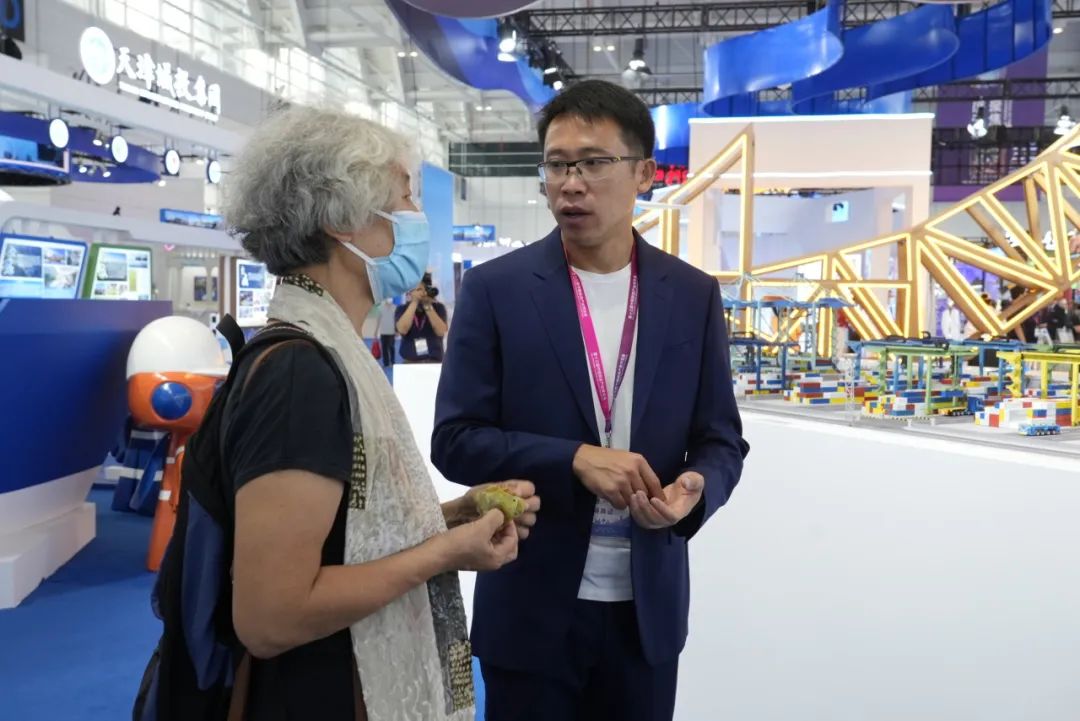 从市区慕名而来的王女士说:“很早就看到过天津港七彩码头的视频,颜色太漂亮了,一直没有机会亲自去看看,没想到在展会上能亲眼目睹,智慧程度和绿色发展水平让人惊叹”。