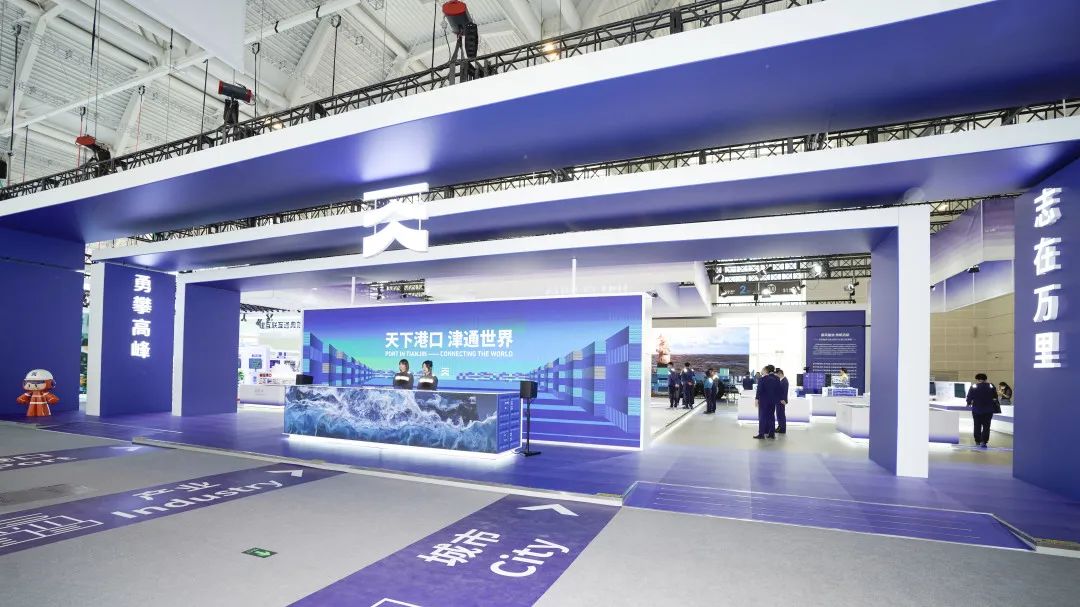 走进展区,这里尽是“智慧元素”。智慧生态、智慧码头、智慧驾驶、智慧中枢、智慧能源、智慧引航、智慧口岸、智慧环境……地坪上标注着天津港70多年来跨越发展历程中一个个值得铭记的精彩瞬间,生动呈现了天津港人跟党奋斗、为国奋进的光辉历程。