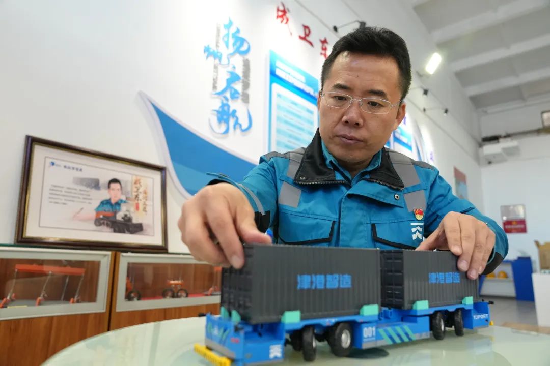 “天津港也取得了一批首创性、标志性的世界一流港口建设成果。”说到天津港,成卫东难掩激动之情。2021年10月17日,全球首个“智慧零碳”码头在天津港正式投产运营。十几个人操控的智能系统,就能轻松指挥百余台无人驾驶大型机械设备同时作业。这其中,最亮眼的就是智能水平运输机器人。而他,正是这些智能机器人的“师傅”。作为首批港口行业AI训练师,他把多年研究的操作方法和驾驶技巧编入程序写成指令,让这些机器人“徒弟”们依靠5G、北斗等自主技术,安全高效的完成运输任务。当前,在天津港,智能水平运输机器人已实现L4级无人驾驶,在全世界首屈一指。