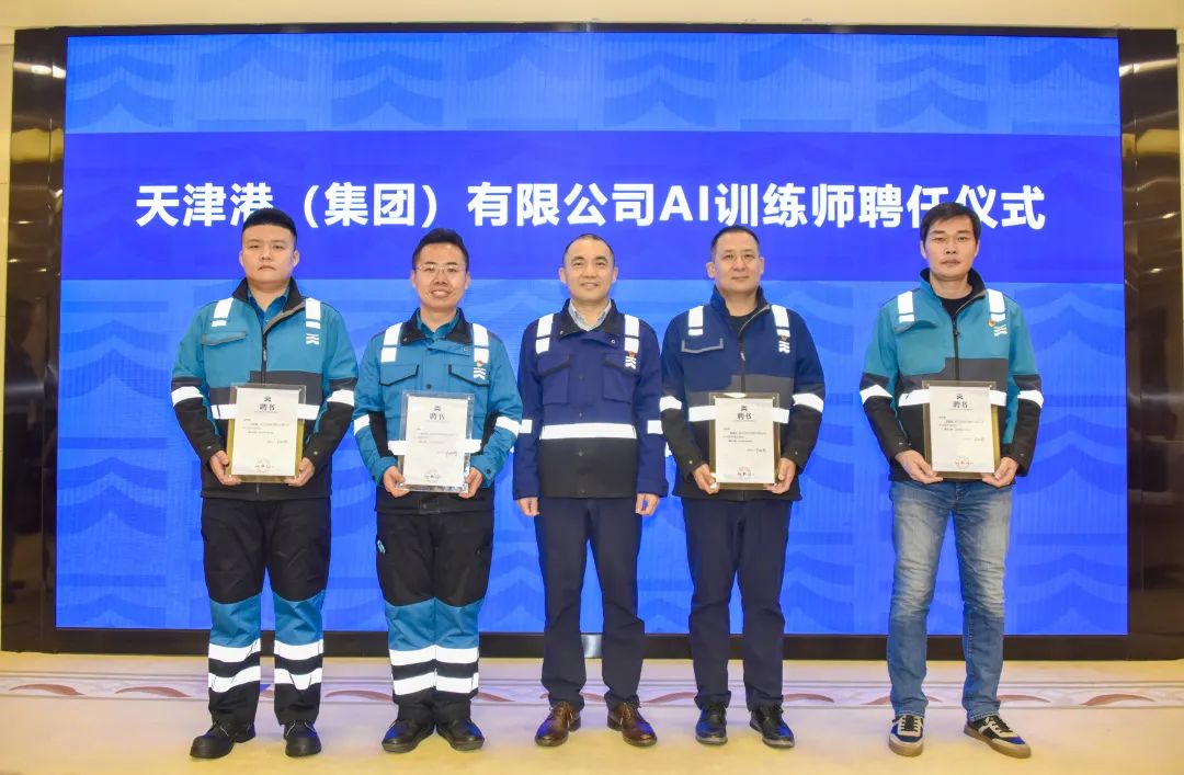 为深入推进“以质为先、效率至上、创新引领”的世界一流智慧港口建设,深耕人才沃土,厚植创新根基,2月24日上午,白菜交流社区聘任全国港口行业首批AI训练师。白菜交流社区副总裁杨杰敏为一公司拖头队副队长成卫东,煤码头公司孔祥瑞操作队队长张瑞元,太平洋国际公司操作队副队长包振园、欧亚国际公司机械队场桥司机刘玉鹏颁发聘书。