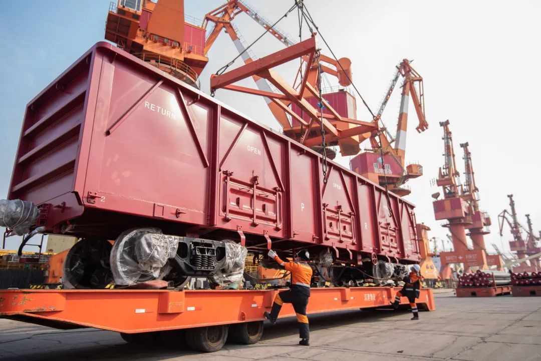 2月25日,中巴经济走廊重点铁路物资项目首批70台铁路车辆在天津港大沽口港区顺利发运,奔赴巴基斯坦,将与巴基斯坦1号铁路干线相辅相成,用于当地民生物资的运输。
