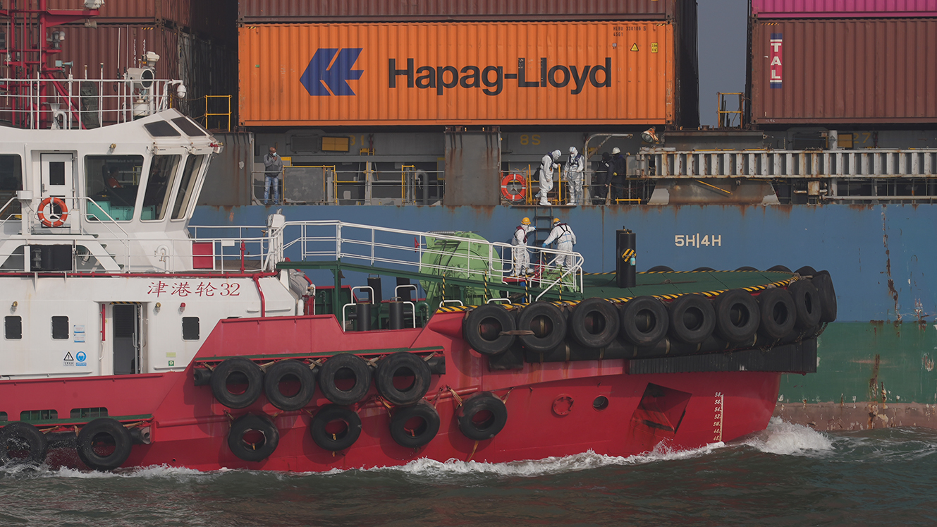 在天津海事局的大力支持下,通过与港航、气象、农委、航保等相关部门和单位的密切配合,集团公司调度指挥中心组织协调引航中心、轮驳公司、外代公司等相关单位协同联动,成立低能见度通航实船试验工作小组,分析总结前期引航拖轮雾航实船测试数据和经验,组织开展低能见度通航实船试验桌面推演,结合天津港低能见度通航研究报告,科学合理制定低能见度通航实船试验方案,建立起试验组织保障、工作沟通协调、气象精准预报、应急处置等工作制度和机制,进一步明确各部门、单位职责,全面理顺了试验的全链条制度体系。试验过程中,依托先进技术装备,创新应用“无人机+AIS”联合船舶领航方案,配合清障拖轮船载红外热成像设备及激光雷达,有效延伸船舶视界。依托港域环境监测系统和船舶实测数据,精准掌握各航段能见度变化情况,为试验保驾护航,确保此次低能见度通航实船试验圆满成功。