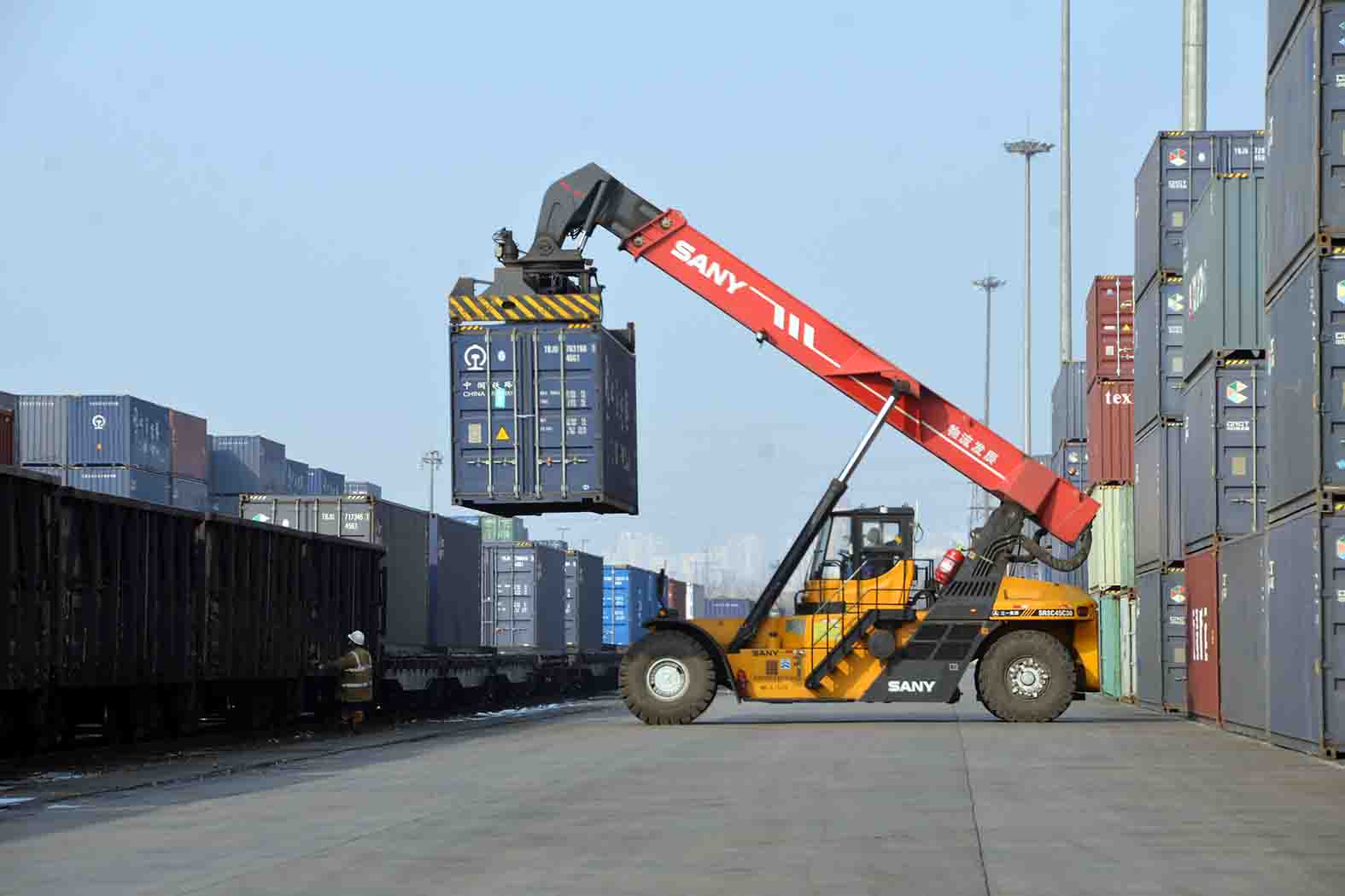“班列即将发出,计划抓紧落实,集中机械、人力进行铁路装卸作业。”1月1日凌晨三点,随着汽笛响起,满载着108节生活物资及国产家电、设备等物的班列顺利发出,驶往蒙古国。元旦期间,物流发展公司广大一线员工坚守工作岗位,充分组织自身人力、机力、运力,严密生产组织,提升作业效率,保证过境班列高效发运,元旦当天完成接卸班列146节,各航陆运队充分调配运力,航陆运单日完成量达到25025标准箱,集装箱进出场作业量完成3442标准箱,以优异成绩开启新年新征程。