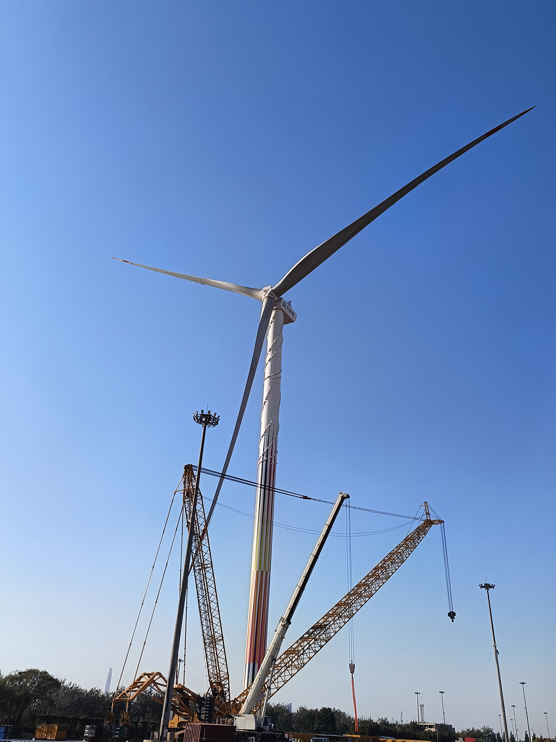 近日,随着距地百米风机基座上的最后一颗螺母被牢牢拧紧,天津港航工程有限公司圆满完成天津港C段绿色智慧能源示范项目(二期)全部施工任务,成功实现了GW171-5.0MW机型在国内的首次陆地安装,为天津港加快世界一流港口建设注入新的绿色动能。