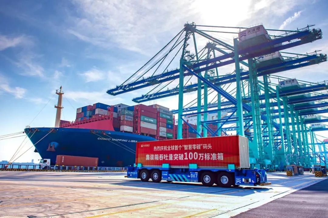 天津港“智慧零碳”码头自2021年10月17日投产运营以来,已实现智能水平运输机器人不同场景下安全高效运行,“智慧水平运输系统”复杂工况、特殊工况处理能力持续加强;单桥作业效率提升40%以上,外集卡平均滞场时间压缩至8.6分钟;设备平均综合单耗下降30%以上,居于行业领先水平;“风光储荷一体化”智慧绿色能源系统并网后,已供电2077万千瓦时,实现生产全过程“碳中和”。
