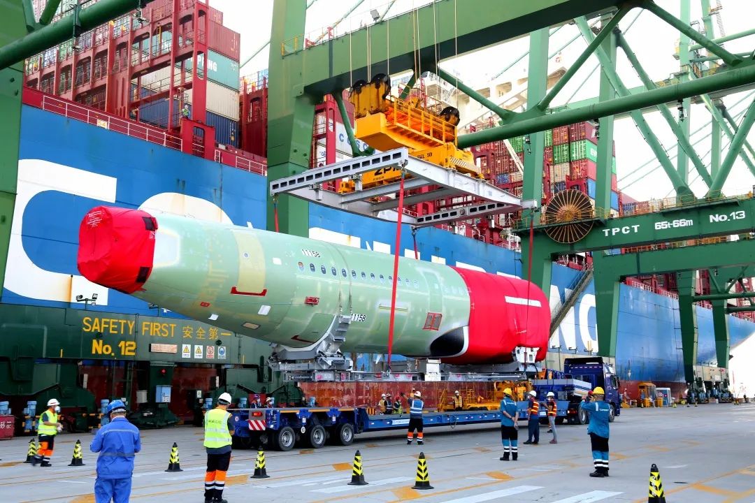 天津港太平洋国际集装箱码头公司高度重视、精心部署,在充分总结和沿用600余架次A320空客大部件“零缺陷”接卸的成功经验基础上,结合A321大部件前机身、后机身尺寸及重量特点,于船舶到港前专门组织相关部门召开船前准备会和接卸推演专题会,共同研讨制定最佳作业工艺方案。同时,在集团调度指挥中心支持下,加强与船公司、口岸单位、船代等相关方的密切协作,确保船舶到港“零等待”作业。作业过程中,各相关部门及队站负责人现场全程督导监护,选派骨干力量参与作业,合力保障接卸质量与作业秩序,再次实现安全、高效、“零缺陷”接卸。