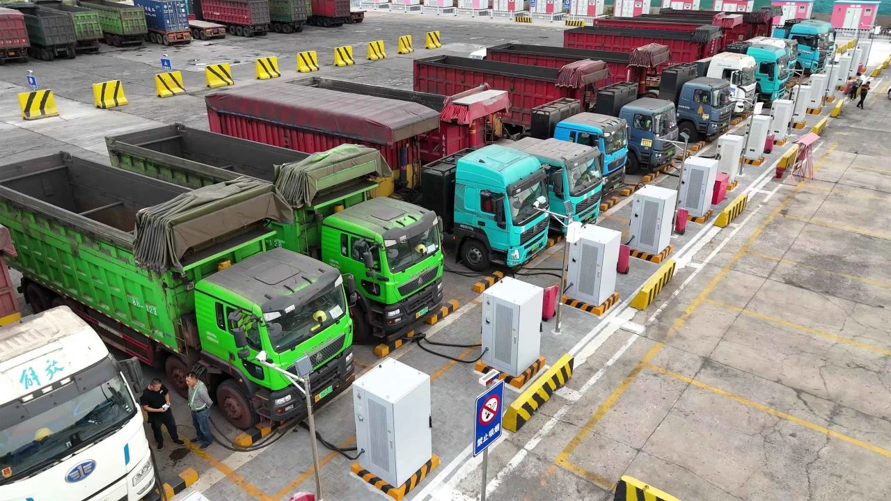 在天津港南疆港区的散货物流配送中心,记者看到,35台300kW的新能源汽车充电桩已经全部投入使用,很多挂着“绿牌照”的重型集卡正在充电。这里也是天津市当前单体规模最大的新能源重卡公共充电站。在天津港区域进行作业的新能源重卡司机选择在这里补电,既能保障车辆的续航能力,还能享受散货物流配送中心为他们提供的一些生活化服务。