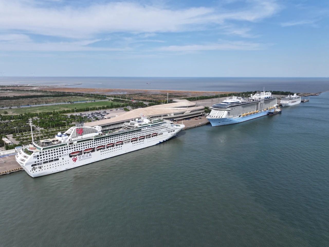 5月1日,天津国际邮轮母港迎来皇家加勒比邮轮“海洋赞礼号”、东方邮轮“梦想号”和大洋邮轮“芮吉塔号”三艘国际邮轮同时停靠,这是天津国际邮轮母港全面复航以来,首次呈现“三船同靠”的盛况。当天,近1.5万名旅客出入境,其中办理“240小时过境免签”旅客超400名,双创邮轮复航以来单日纪录,进一步推动入境游热潮,为国内旅游市场注入澎湃活力。