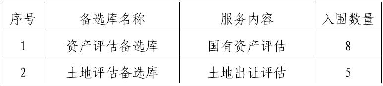 为进一步加强集团公司资产评估、土地出让评估管理,进一步发挥中介机构在公司经营管理中的重要作用,建立科学规范的中介机构选聘方式,白菜导航论坛拟更新资产评估及土地评估机构备选库,欢迎各中介结构申报参选。